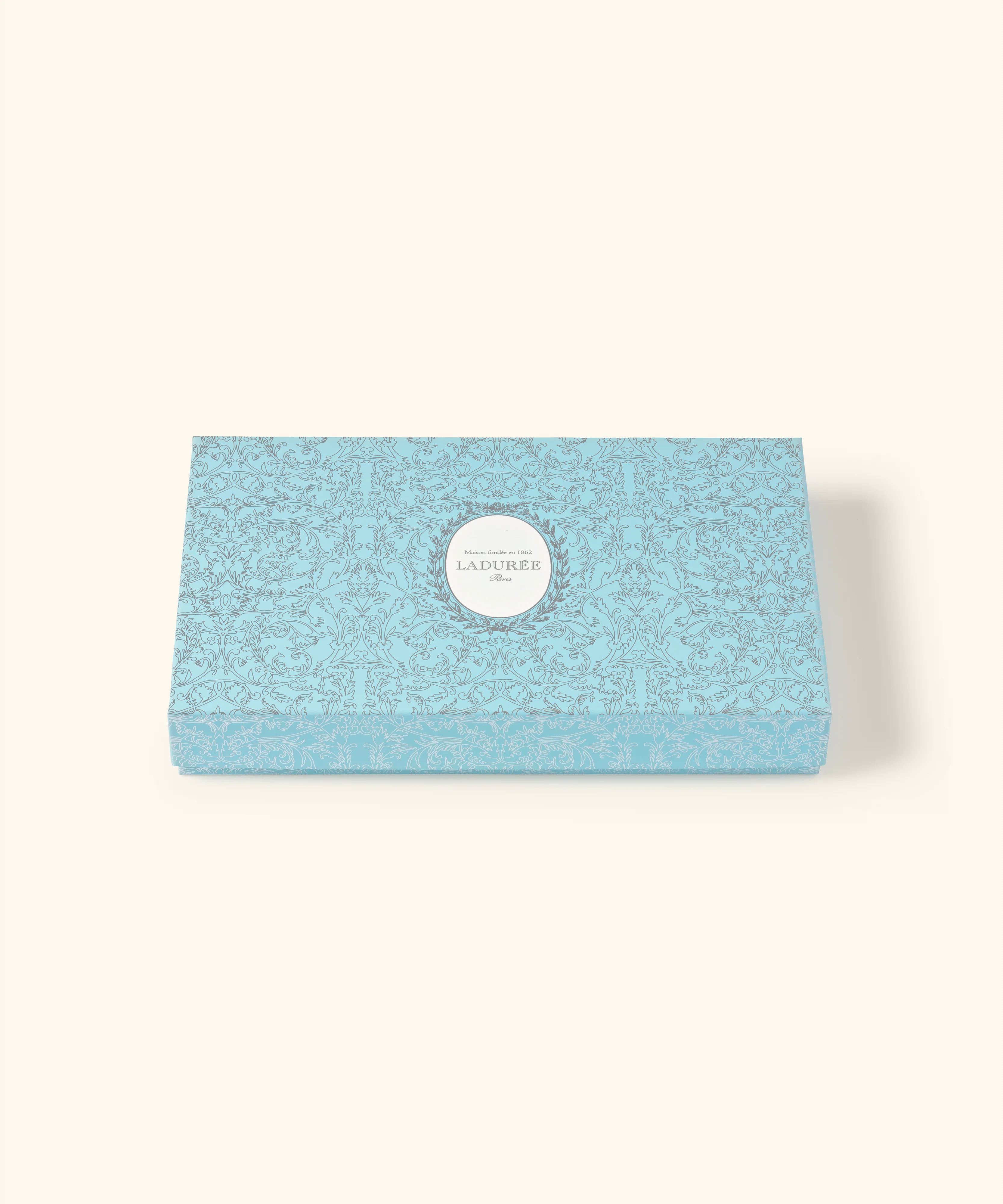 Succombez à l’élégance du coffret de 42 macarons arabesque bleu, orné du motif "Arabesque", un symbole emblématique de La Maison Ladurée. Ce coffret se distingue par son design raffiné, avec une touche argentée sur un fond bleu profond, qui souligne à merveille l'art de vivre à la française.